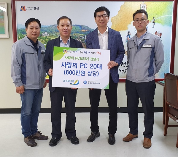 ¾È¼º½Ã´Â 23ÀÏ µ¿¼ºÈÀÎÅØ(´ëÇ¥ ·ù¿Ï¼ö)°ú Çѱ¹ITº¹ÁöÁøÈï¿ø(¿øÀå Á¤Àϼ·)À¸·ÎºÎÅÍ ¡®»ç¶ûÀÇ PC¡¯ 20´ë(600¸¸¿ø»ó´ç)¸¦ ±âŹ¹Þ¾Ò´Ù°í ¹àÇû´Ù.