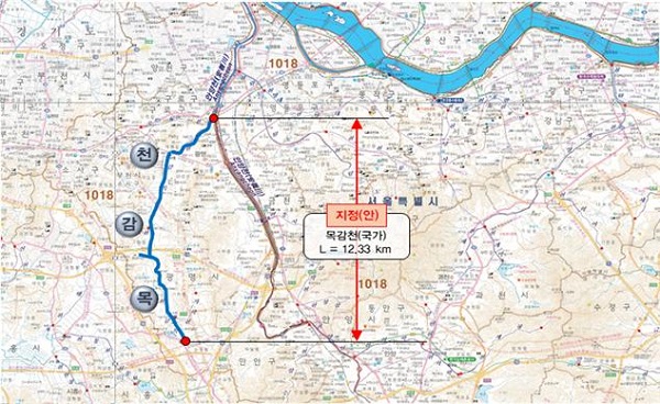 ±¹°¡ÇÏõÀ¸·Î ½Â°ÝµÉ ¸ñ°¨ÃµÀº °æ±âµµ ½ÃÈï½Ã¿Í ±¤¸í½Ã¿¡¼ ¼¿ï½Ã ±¸·Î±¸¸¦ °ÅÃÄ ¾È¾çõ¿¡ ÇÕ·ùÇÏ´Â 12.33kmÀÇ ÇÏõÀÌ´Ù. ½ÅõÀº ¾çÁÖ½Ã¿Í µ¿µÎõ½Ã¸¦ °ÅÃÄ ¿¬Ãµ±º ÇÑź°À¸·Î È帣´Â 27.12kmÀÇ ÇÏõÀÌ´Ù.