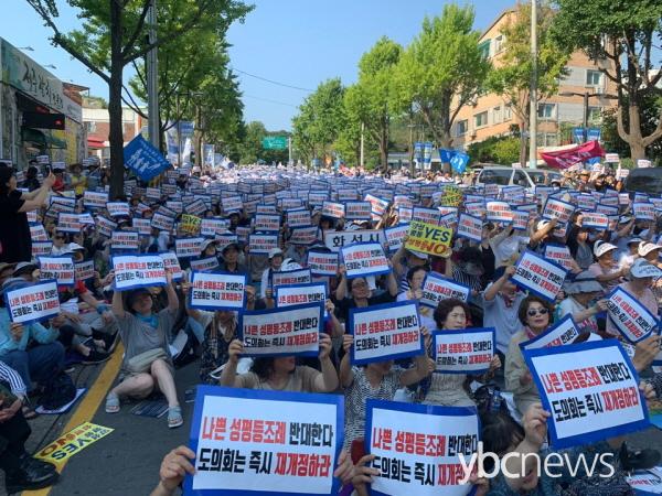ÁÖÀÏÀÎ 25ÀÏ ¿ÀÈÄ 3½Ã ÁÖÃÖ Ãø Ãß»ê 3¸¸¿©¸í(°æÂûÃø Ãß»ê, 1¸¸7õ¸í)ÀÌ ¸ðÀÎ '¼ºÆòµîÁ¶·Ê ¹Ý´ë ¹× Àç°³Á¤ Ã˱¸'ÁýȸÀÇ ¿±â´Â »ç±×·¯µå´Â ¿©¸§³¯¾¾¿Í´Â ¹Ý´ë·Î ¿ÀÈ÷·Á ´õ¿í ¶ß°Ì°Ô Ÿ¿Ã¶ú´Ù.