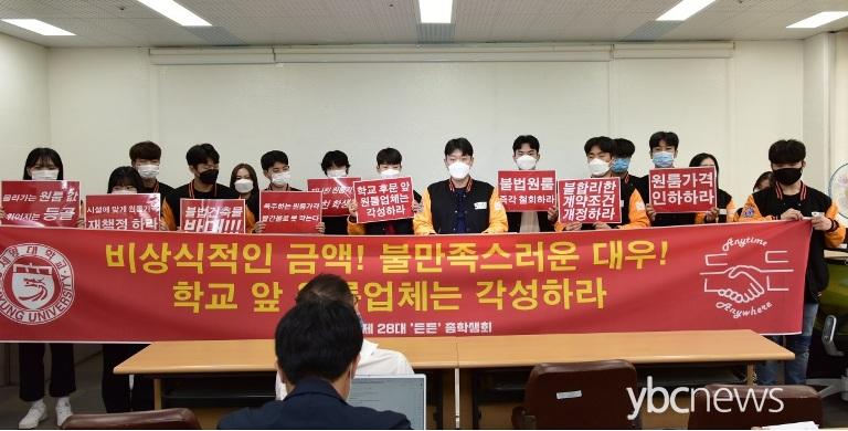 ÃæºÏ Á¦Ãµ ¼¼¸í´ëÇб³ ÃÑÇлýȸ´Â 7ÀÏ Á¦Ãµ½Ãû ºê¸®Çη뿡¼ ±âÀÚȸ°ßÀ» ¿°í ´ëÇÐ Àα٠¿ø·ëÀÇ ºÒ¹ý°ÇÃ๰À» Á¶»çÇϰí, ³ôÀº ÀÓ´ë·á¸¦ ³·Ãß¶ó°í ¿ä±¸Çß´Ù.