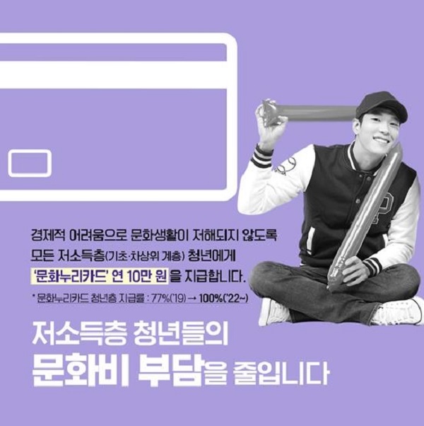 ÅëÇÕ¹®ÈÀÌ¿ë±Ç»ç¾÷Àº 6¼¼ ÀÌ»ó ±âÃÊ»ýȰ¼ö±ÞÀÚ ¹× Â÷»óÀ§°èÃþ(2015.12.31. ÀÌÀü Ãâ»ýÀÚ)À» ´ë»óÀ¸·Î ÅëÇÕ¹®ÈÀÌ¿ë±Ç(¹®È´©¸®Ä«µå)À» ¹ß±ÞÇϸç, ¹®È´©¸®Ä«µå´Â ¹®È¿¹¼ú, °ü±¤, üÀ° °ü·Ã °¡¸ÍÁ¡¿¡¼ º¸´Ù Æí¸®ÇÏ°í ´Ù¾çÇÏ°Ô À̿밡´ÉÇÏ´Ù.