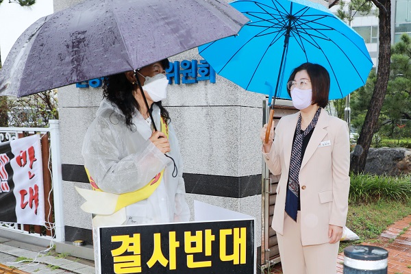±èº¸¶ó ½ÃÀåÀº ÇѰÀ¯¿ªÈ¯°æÃ» ¾Õ¿¡¼ 1ÀÎ ½ÃÀ§ÇÏ´Â ½Ã¹ÎµéÀ» ¸¸³ª ¾È¼º½ÃÀÇ ÀÔÀåÀ» Àü´ÞÇϱâ À§ÇØ Ã»Àå°ú ¸é´ãÇϰíÀÚ ÇÑ´Ù´Â ¹è°æÀ» ¼³¸íÇÏ°í ±×µéÀÇ ³ë°í¸¦ °Ý·ÁÇß´Ù.