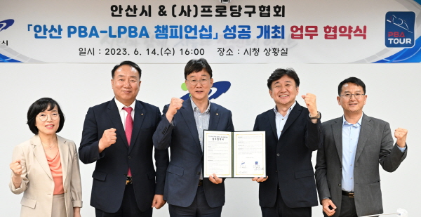 ¾È»ê½Ã´Â Áö³ 14ÀÏ (»ç)ÇÁ·Î´ç±¸Çùȸ¿Í ÇÁ·Î´ç±¸´ëȸ(½ÇÅ©·Îµå&¾È»ê PBA-LPBA èÇǾð½Ê) ¼º°ø°³ÃÖ¸¦ À§ÇÑ ¾÷¹«Çù¾àÀ» ü°áÇß´Ù°í 15ÀÏ ¹àÇû´Ù.