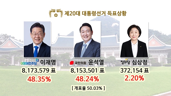 [Æ÷Åä] Á¦20´ë ´ëÅë·É¼±°Å °³Ç¥ÇöȲ (23½Ã 20ºÐ)